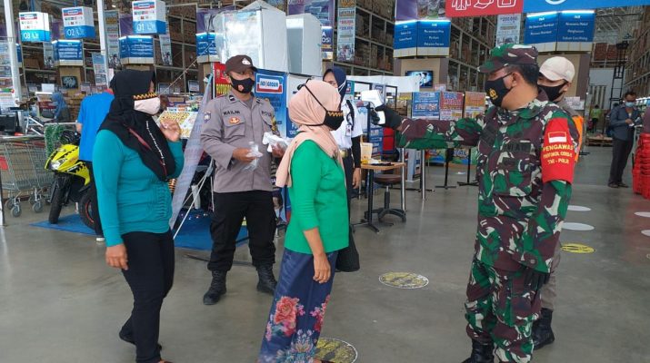 Linkarutama.com – Babinsa Koramil 410-06/Kedaton Kodim 0410/KBL bersama sejumlah personel Satuan Tugas (Satgas) Penanganan Covid-19 Kota Bandar Lampung, terapkan Protokol Kesehatan di pusat perbelanjaan Indogrosir, Labuhan Ratu Bandar Lampung, Minggu (24/1/2021).