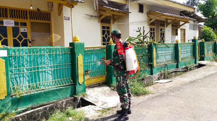 Dilokasi, Sertu Animan mengatakan, dengan belum berakhirnya pandemi Covid-19, pihaknya bersama dengan warga melakukan penyemprotan disinfektan di wilayah binaan