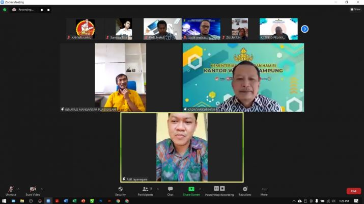 Melalui Virtual Zoom Meeting, Kepala Divisi Pelayanan Hukum dan HAM, Nur Ichwan melakukan monitoring kinerja secara bertahap pada bidang masing-masing, mulai dari Bidang Hukum dan hari ini Bersama Bidang Pelayanan Hukum, Kamis (22/7/2021).