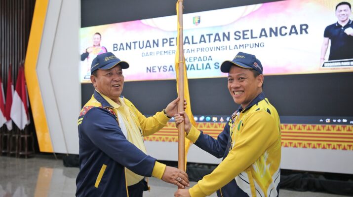 Pada kesempatan itu juga, Gubernur Arinal memberikan bantuan berupa peralatan Selancar kepada atlet Selancar Lampung Neysa Awalia Saldira asal Kabupaten Pesisir Barat.