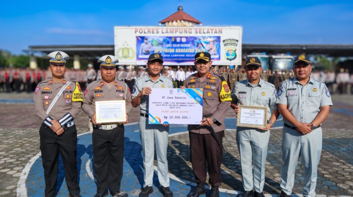 Linkarutama.com – Polres Lampung Selatan diganjar penghargaan dari Korlantas Polri dan PT Jasa Raharja atas terselanggaranya kolaborasi Pos Pelayanan Terpadu R2 Jalur Mudik dan Balik Lebaran 1445 H 2024.