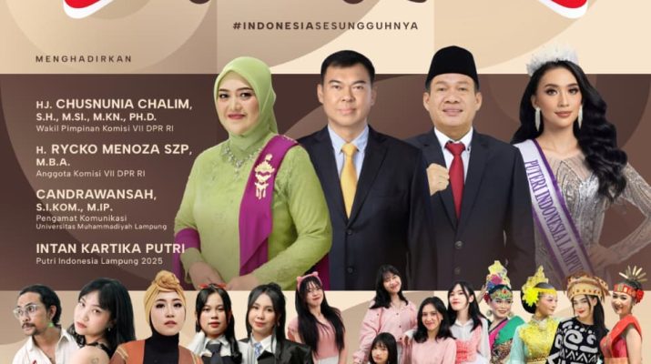 Linkarutama.com – Wakil Pimpinan Komisi VII DPR RI, Chusnunia Chalim, mendukung event bertajuk “Kita Indonesia”, yang akan digelar Lembaga Penyiaran Publik Radio Republik Indonesia (LPP RRI) Bandar Lampung, pada Sabtu (23/8/2025).