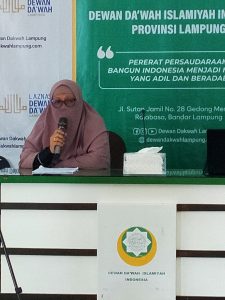 Perwakilan Pengurus Pusat Muslimat Dewan Da’wah, Mufidah Said, dalam sambutannya menekankan pentingnya sinergi antara Muslimat dan Dewan Da’wah Lampung dalam merancang kebijakan dan program strategis.