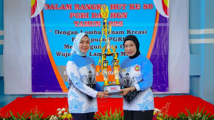 Acara ini juga diisi dengan penyerahan secara simbolis trophy, piagam, dan bingkisan kepada Ketua Perempuan PGRI Provinsi Lampung, Pori Sulpakar, oleh Bunda Guru Provinsi Lampung, Purnama Wulan Sari Mirza. Setelah itu, para peserta mengikuti kegiatan senam bersama “Senam Lampung Maju” dan “Tabola Bale,” yang dilanjutkan dengan penampilan lomba senam kreasi dari masing-masing kabupaten/kota.(*/her)