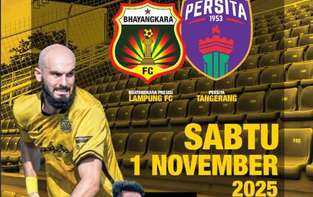 Linkarutama.com – Keseruan Liga Indonesia akan kembali hadir di Kota Tapis Berseri. Tim kebanggaan masyarakat Lampung, Bhayangkara Presisi Lampung FC, akan menjamu Persita Tangerang dalam laga seru yang digelar di Stadion PKOR Sumpah Pemuda, Bandar Lampung, pada Sabtu, 1 November 2025 pukul 15.30 WIB.