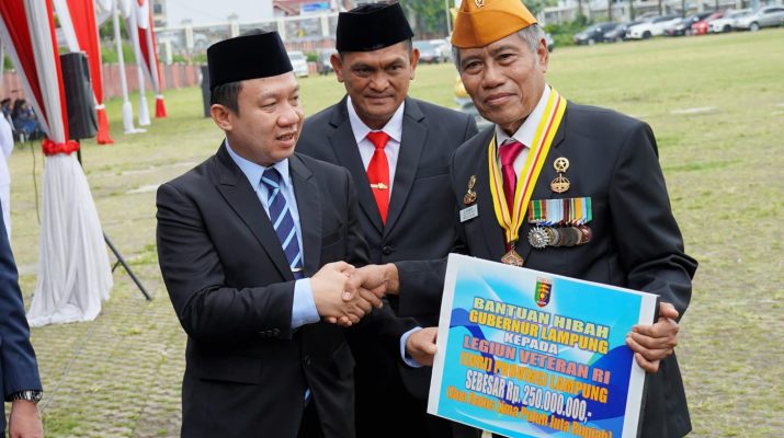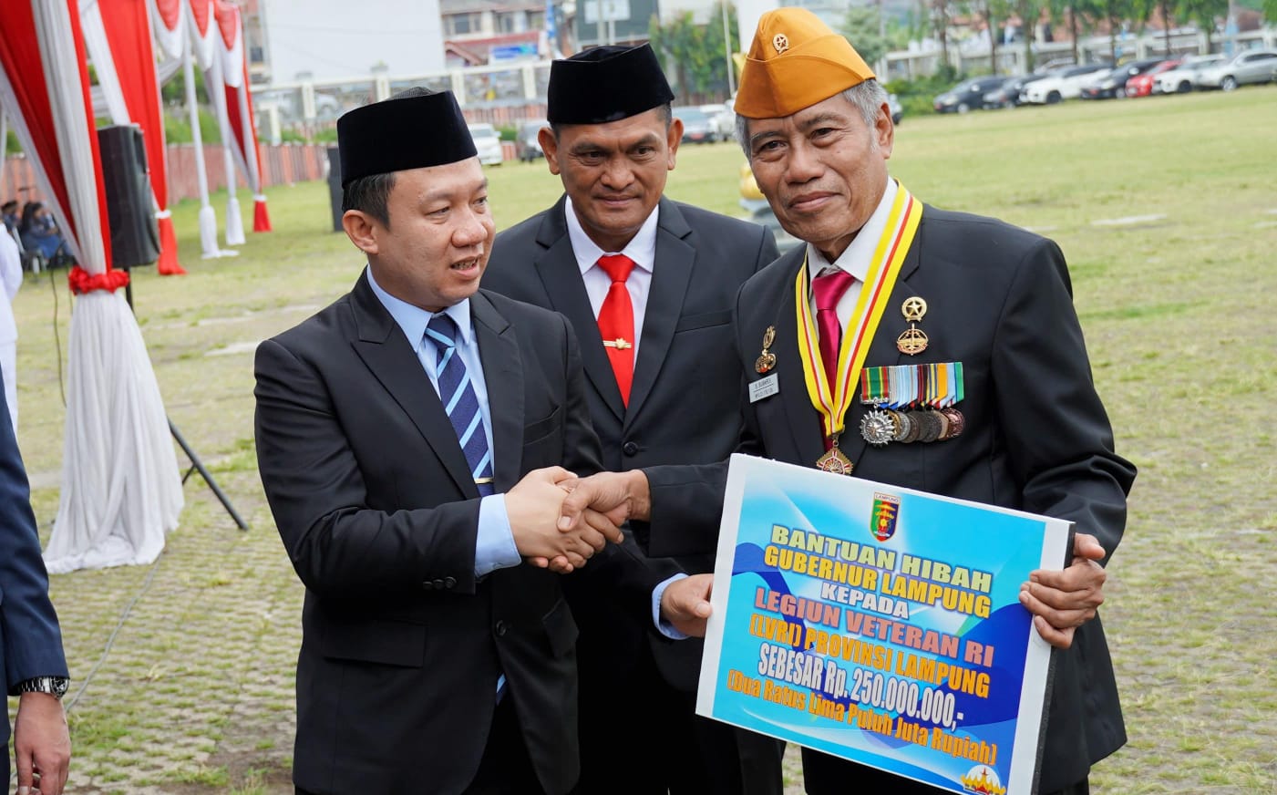 Sebagai wujud penghargaan terhadap jasa para pejuang, dalam rangkaian upacara peringatan Hari Pahlawan juga dilakukan penyerahan bantuan hibah dan kursi roda secara simbolis kepada perwakilan Legiun Veteran Republik Indonesia (LVRI) oleh Sekretaris Daerah Provinsi Lampung, Marindo Kurniawan.(*/her)
