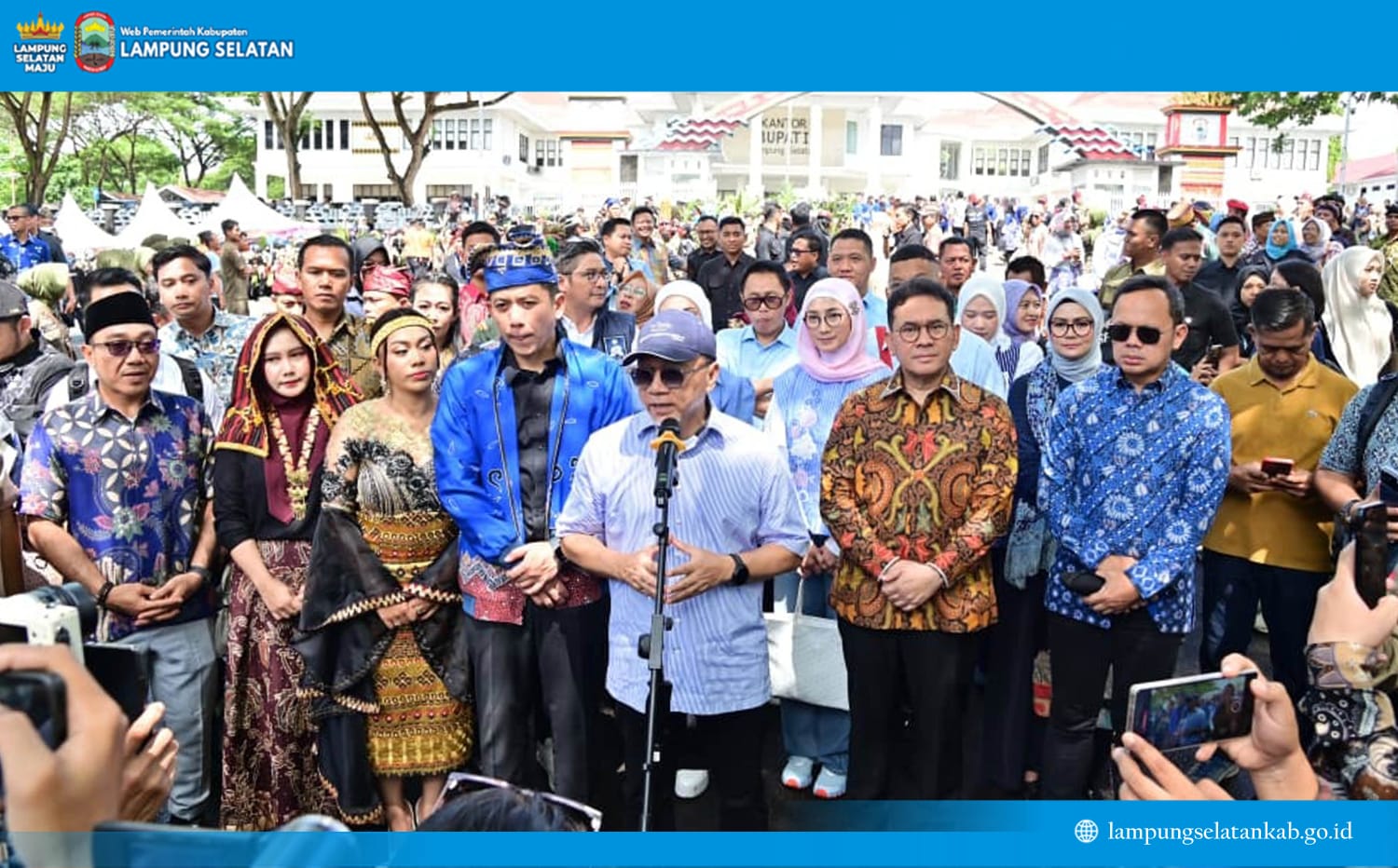 Pawai Budaya HUT ke-69 Lampung Selatan turut dihadiri oleh sejumlah tokoh nasional, di antaranya Menko Pangan Zulkifli Hasan (Zulhas) Menteri Perdagangan Budi Santoso, Wakil Menteri Dalam Negeri Bima Arya Sugiarto, serta anggota DPR RI seperti Sigit Purnomo, Surya Utama, Primus Yustisio, Eko Purnomo, Desi Ratnasari, dan Putri Zulkifli Hasan.