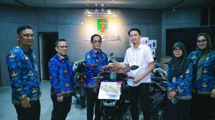 Linkarutama.com – Kepala Badan Pendapatan Daerah (Bapenda) Provinsi Lampung Slamet Riadi secara resmi menyerahkan hadiah Gebyar Samsat 2025 kepada para pemenang undian.