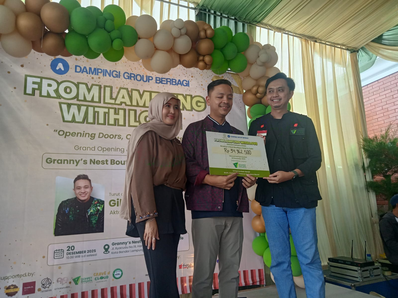 Linkarutama.com – Grand Opening Doors dan Opening Hearts Granny’s Nest Boutique Hotel & Café yang resmi dibuka pintunya melalui sebuah acara bertajuk “From Lampung With Love”, sebuah Grand Opening & Charity Event yang memadukan perayaan, kehangatan, dan kepedulian sosial dalam satu momen bermakna, Sabtu (20/12/2025).
