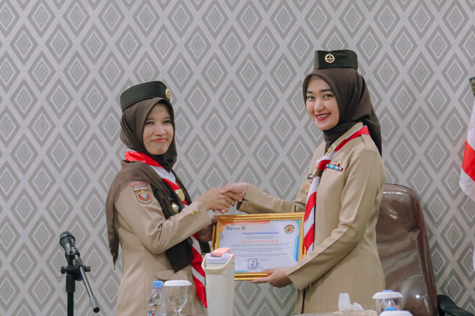 Wagub Jihan Berikan Penghargaan Kwarda Pramuka Lampung atas Kepedulian dan Komitmen Membantu Korban Banjir Sumatera