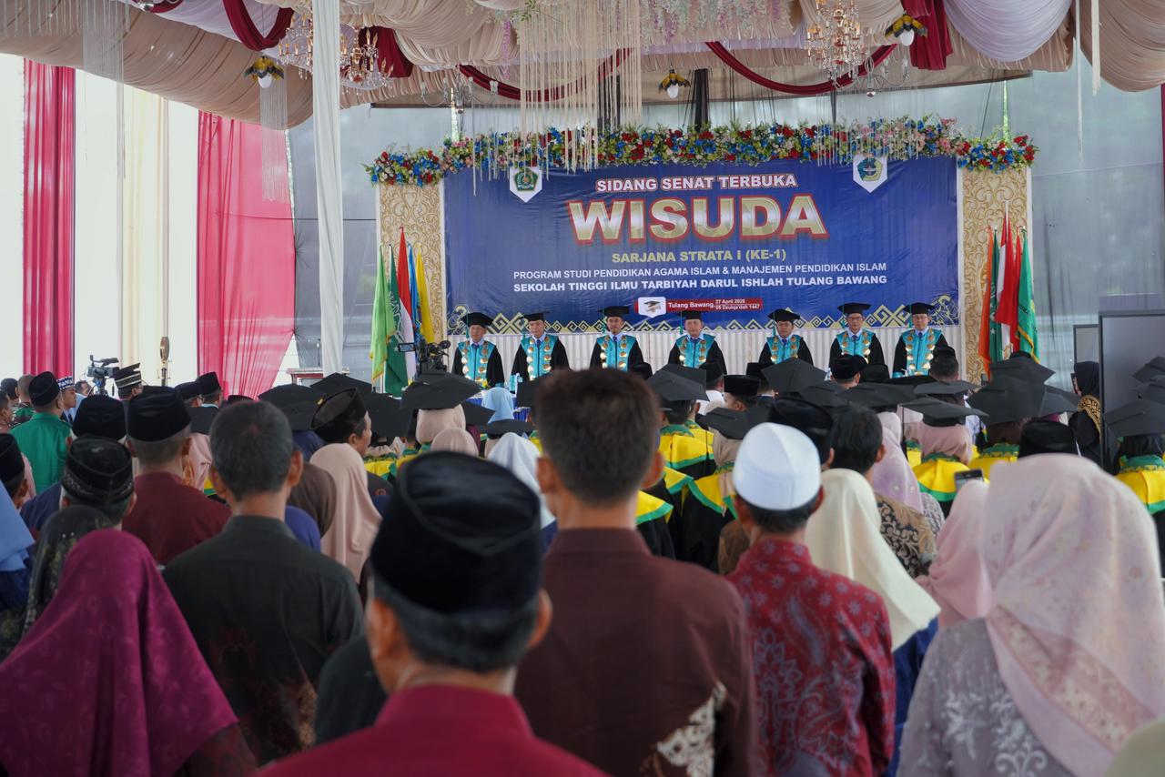 Linkarutama.com – Pemerintah Provinsi Lampung mengapresiasi Sekolah Tinggi Ilmu Tarbiyah (STIT) Darul Ishlah Tulang Bawang atas Wisuda Perdana Program Sarjana (S1) Tahun 2026 yang digelar di Aula STIT Darul Ishlah, Senin (27/4/2026).